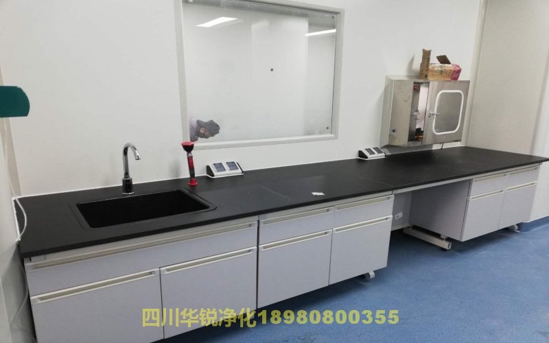 消毒:在三個(gè)實(shí)驗(yàn)區(qū)和三個(gè)緩沖區(qū)頂部以及傳送窗內(nèi)部安裝有紫外燈,供消毒用。另外在三個(gè)實(shí)驗(yàn)區(qū)還設(shè)置移動(dòng)紫外線燈,可對(duì)實(shí)驗(yàn)桌進(jìn)行局部消毒。